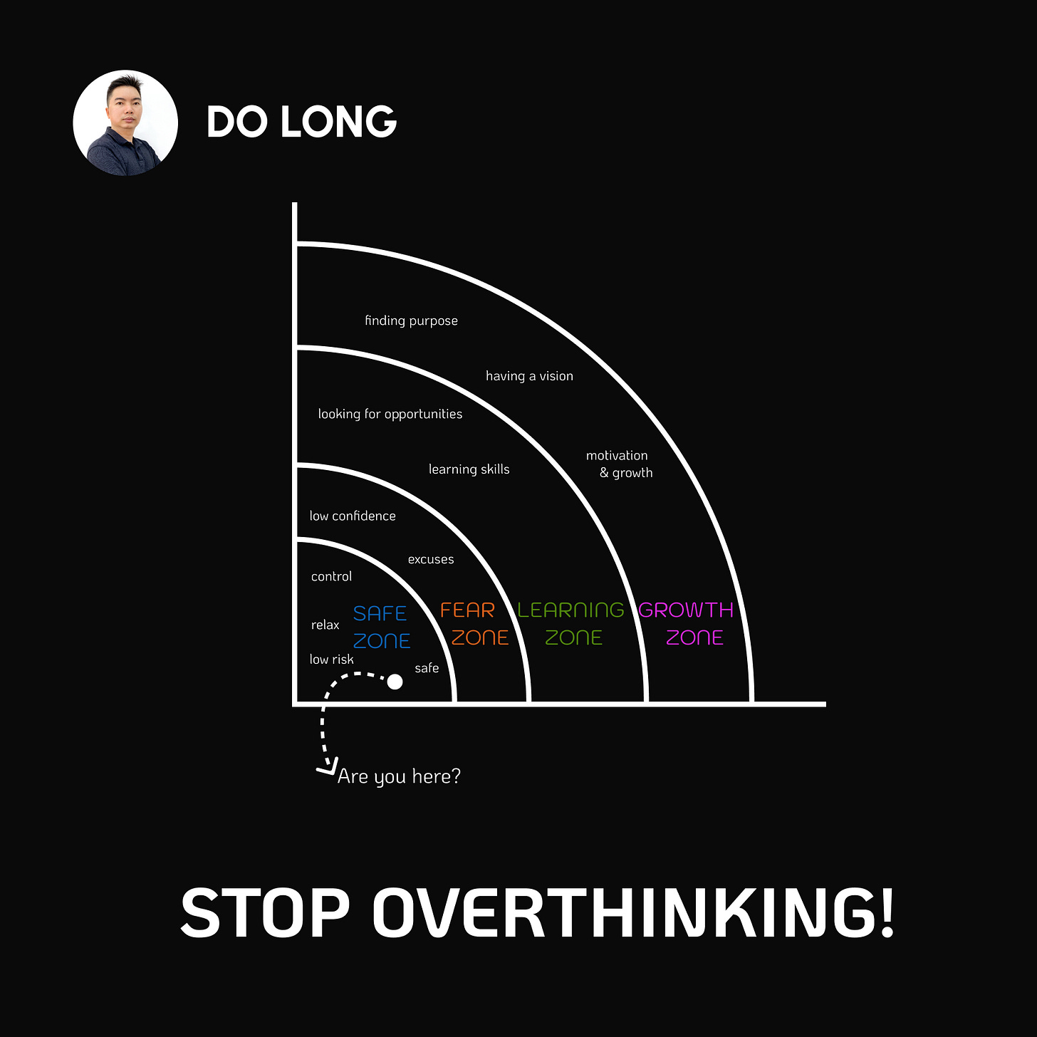 By overthinking, you start worrying about too many factors which hinder you to grow. Let's stop overthinking. Replace it with only one action is learning. Remember that nothing can stop you from learning in your safe zone. Step by step you can start a new journey by just learning from today. Start picking a book you like and read it. Extend your network of knowledge by follow other people on Linkedin.